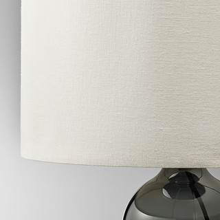 Features a base in mouth-blown smoke-coloured glass and a textile lampshade that spreads a warm, cosy light. With a total height of 52 cm, it is just as decorative even when switched off.